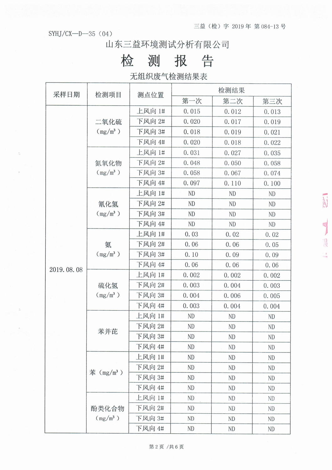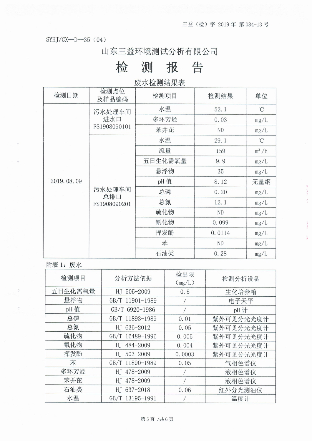 山東濰焦集團薛城能源有限公司8月份檢測報告