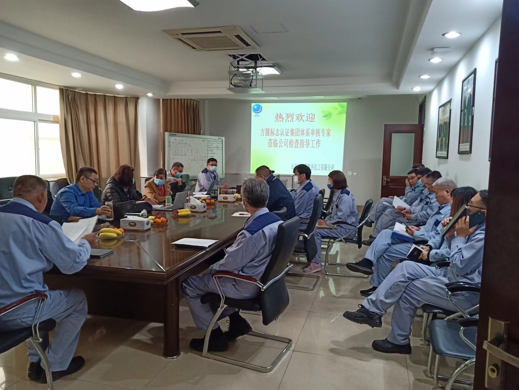 11月11日上午,方圓認(rèn)證集團山東分公司委派四位專家對山東杰富意公司質(zhì)量、環(huán)境、職業(yè)健康安 全以及能源“四體系”進行審核。歷經(jīng)3天的督查審核,公司順利通過ISO四體系認(rèn)證。公司總經(jīng)理竹內(nèi)敦人、副總經(jīng)理夏濰平、各部門負(fù)責(zé)人及內(nèi)審員等參加首(末)次會議。