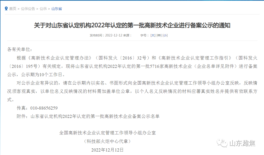 近日,全國高新技術企業認定管理工作領導小組辦公室發布通知,對山東省認定機構2022年認定的高新技術企業進行備案公示,棗莊振興炭材科技有限公司位列其中,被認定為“國家高新技術企業”。